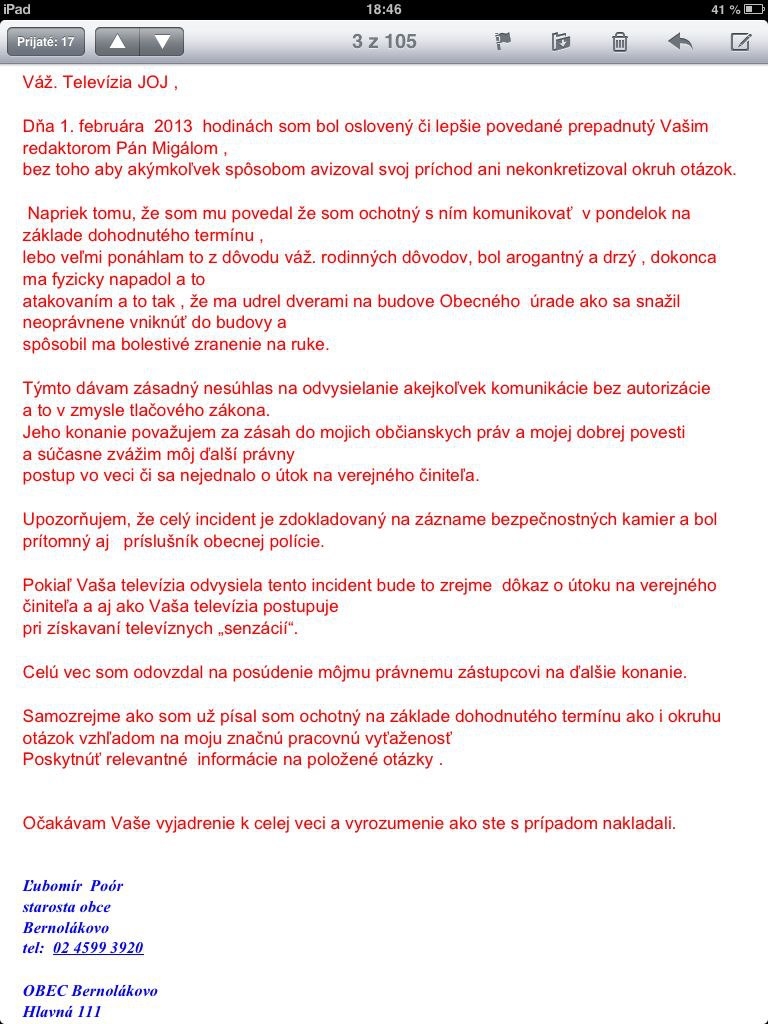 Ak budete opätovne ignorovať tento mail (česť výnimkám) je to porušenie zákona z Vašej strany a ja si vyhradzujem právo napísať, že ste odmietli reagovať, nakoľko ste povinní odpovedať. Všetky Vaše odpovede budú zverejnené na stránke kveci.webnode.com a na facebookovom